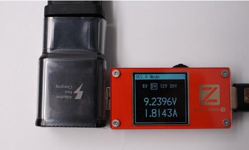 对充电器进行诱骗输出,测试结果为QC2.0模式下,支持最大9V/1.8A输出,最大功率约为16W。相比目前市面上的快充充电器来说,三星note8充电器的输出性能还真叫人有些着急。