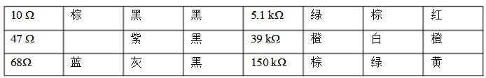 技巧3:在仅靠色环间距还无法判定色环顺序的情况下,还可以利用电阻的生产序列值来加以判别。比如有一个电阻的色环读序是:棕、黑、黑、黄、棕,其值为:100×10000=1MΩ误差为1%,属于正常的电阻系列值,若是反顺序读:棕、黄、黑、黑、棕,其值为140×1Ω=140Ω,误差为1%。显然按照后一种排序所读出的电阻值,在电阻的生产系列中是没有的,故后一种色环顺序是不对的。