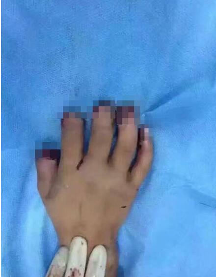 据悉,被送到哈尔滨市骨伤科医院时,小卓的短裤上全是血,右手除小手指是完整的,其余4个手指都炸断了,电子元件的碎片还插在手掌上,孩子的脸上、胸部、肚子和腿部也有被崩坏的伤口。医院立即为孩子进行了手术,术后病情稳定。
