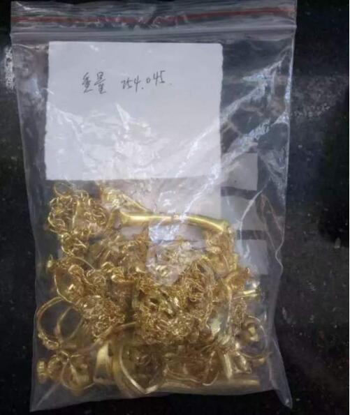 “当时真的惊呆了!”倪新国回忆,拆开快递先是一个茶叶盒,一层层翻开来,里面竟然是一包黄金,“金灿灿的首饰,里面的小纸条上还写着‘254余克’的字样,毛估估也值7万多元。”