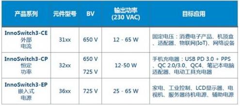如图所示,为了适应不同的应用,InnoSwitch3 IC产品系列提供三种版本:
