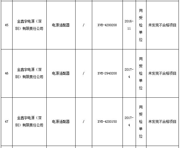 深圳市市场监管局:金鑫宇电源适配器合格率高达100%