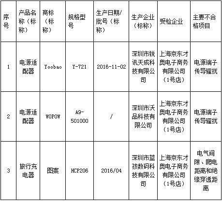 12月20日,上海市质监局官网发布2017年上海市电源适配器(信息技术设备)产品质量监督抽查结果。结果显示,近期,上海市质量技术监督局对本市生产和销售的电源适配器(信息技术设备)产品质量进行了抽查。本次共抽查23批次样品,经检测,不合格3批次。